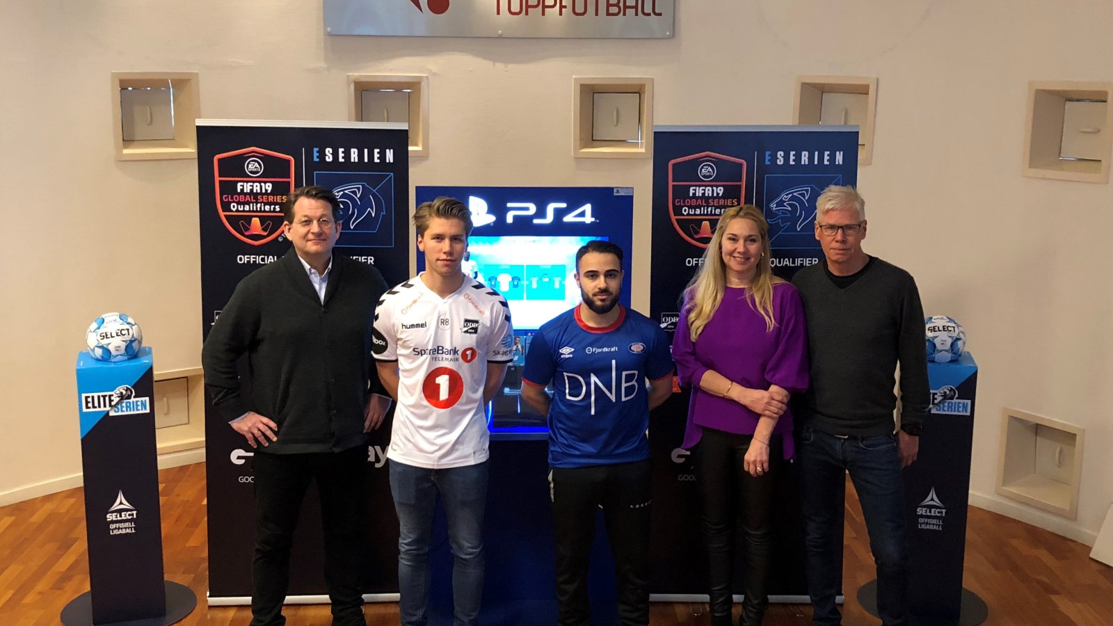 Bildet på toppen: Harald Strømme (Good Game), Sander "Randulle" Austad Dale (Odds eSport-spiller), Arkan Resul (Vålerengas eSport-spiller), Tine Austvoll Jensen (Discovery) og Leif Øverland (Norsk Toppfotball)