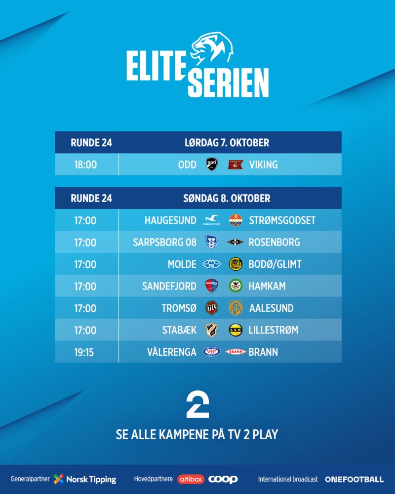 Molde, som forrige helg slo Viking 4-0, kan på nytt spille en nøkkelrolle i tittelkampen når de møter tabelleder Bodø/Glimt. Begge lag møtte europeisk motstand denne uken: Molde mot Bayer Leverkusen og Bodø/Glimt mot Club Brugge. Etter nederlag for begge, blir det interessant å se hvordan de responderer denne helgen. Bodø/Glimt jakter poeng for å beholde topplasseringen, mens Molde, som ligger fire poeng bak Tromsø, jakter medalje. Dette oppgjøret er også en forsmak på cupfinalen, da begge lagene nylig sikret seg en plass i finalen.