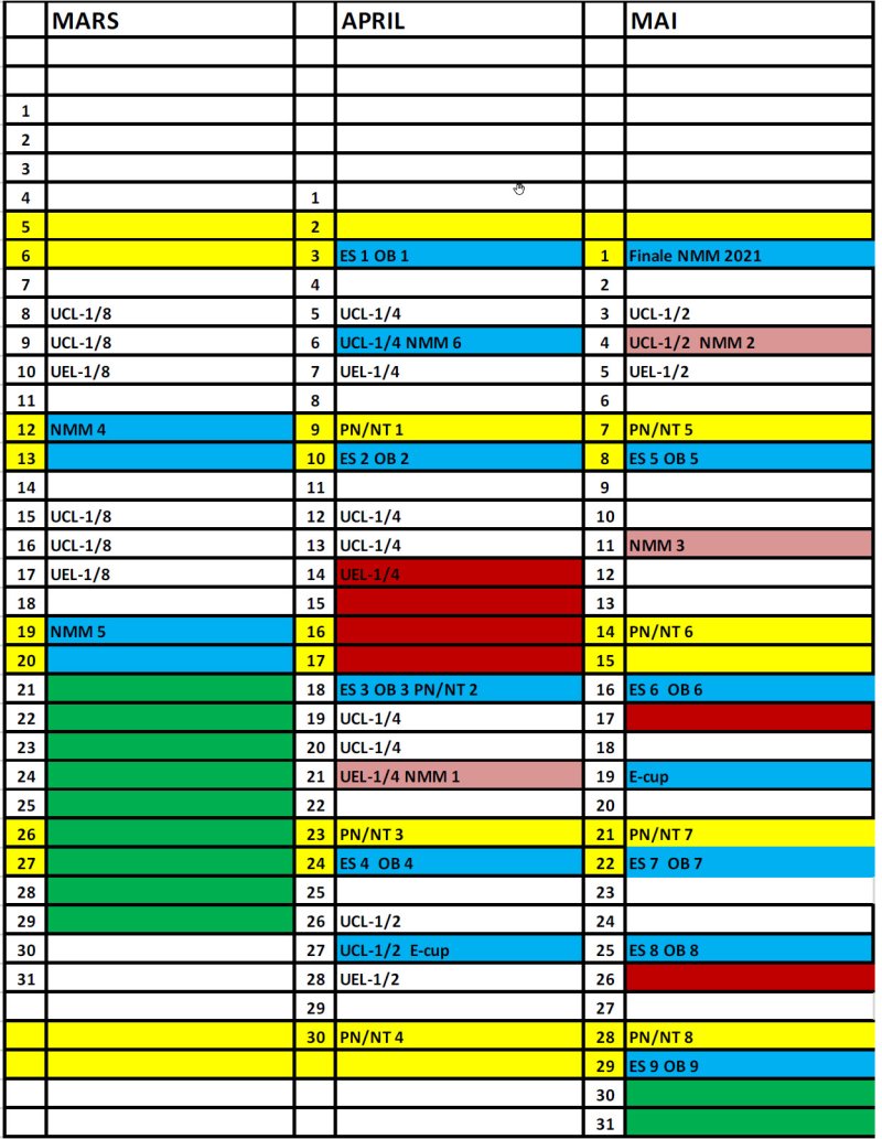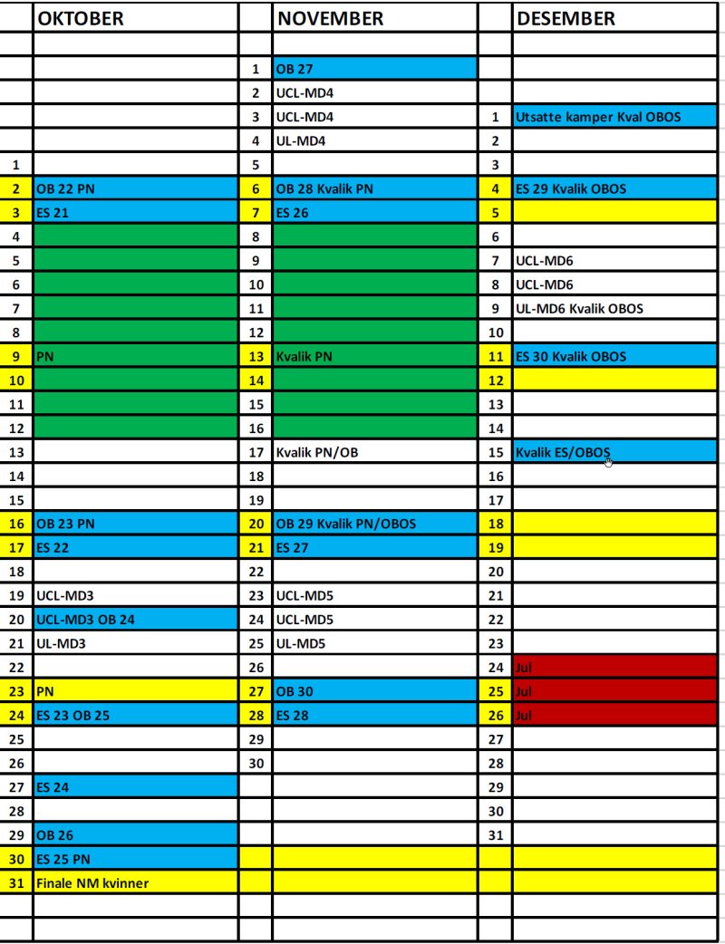 Ny hovedterminliste menn 2021