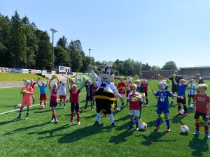 Barna på Hei fotballskole hadde nettopp spist lunsj, da Brodd plutselig dukket opp forrige uke.
