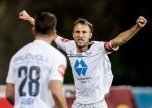 Mikkel Maigaard sikret årets første borteseier med en frisparkperle. Etter kampen feiret spillerne sammen med de tilreisende på Alfheim!